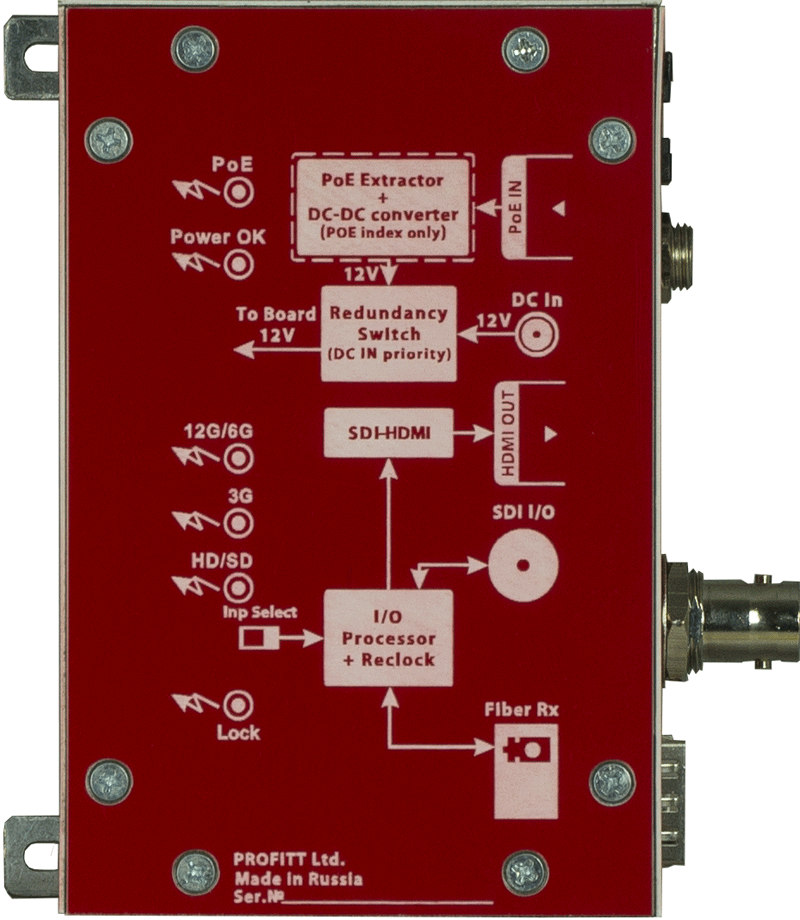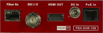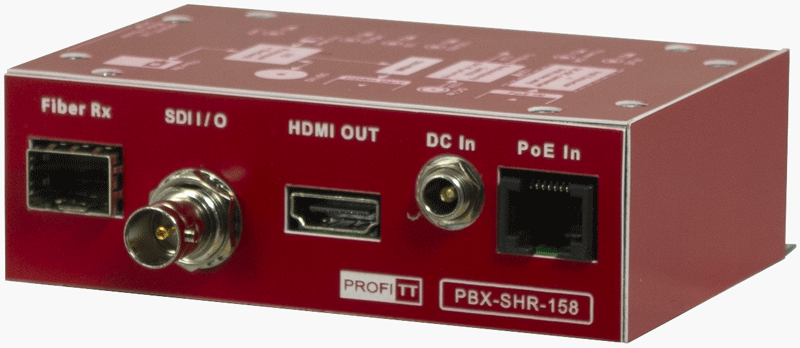 Оптический приёмник PBX-SHR-158-PoE серии ProBox предназначен для преобразования входного оптического сигнала в электрический 12G/3G/HD SDI/HDMI 2.0 сигнал. Пользователь может выбрать источник сигнала для 4K HDMI 2.0 выхода: SFP (оптическое подключение) или BNC (электрический SDI-сигнал). Питание устройства осуществляется через Ethernet (PoE) или внешний адаптер питания.