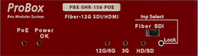 Оптический приёмник PBX-SHR-158-PoE серии ProBox предназначен для преобразования входного оптического сигнала в электрический 12G/3G/HD SDI/HDMI 2.0 сигнал. Пользователь может выбрать источник сигнала для 4K HDMI 2.0 выхода: SFP (оптическое подключение) или BNC (электрический SDI-сигнал). Питание устройства осуществляется через Ethernet (PoE) или внешний адаптер питания.
