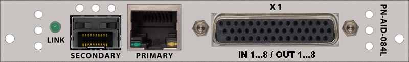 поддерживают: Количество поддерживаемых входных и выходных аудио каналов, а также их формат, зависят от установленных в блок звуковых субмодулей. Аналоговые субмодули имеют 8 входов (PSA-IN-1364, PSM-IN-1363) и 8 выходов (PSA-OUT-1365). Цифровые субмодули имеют 4 входа (PSE-IN-1366) и 4 выхода (PSE-OUT-1367). Максимальное количество устанавливаемых субмодулей для PN-AID-084 – 6 шт., при этом число входных и выходных модулей должно быть не более 4-х. Максимальное количество устанавливаемых субмодулей для PN-AID-084L – не более 2 шт. Субмодули входные микрофонные (PSM-IN-1363) кроме поддержки сигналов от микрофонов обеспечивают подачу напряжения “+48V” на микрофоны и регулировку усиления сигналов от микрофонов. Субмодули PSM-IN-1363 могут использоваться и для линейных аналоговых звуковых сигналов. Цифровые субмодули сигналов AES3 поддерживают User Bits и Channel Bits (совместим с оборудованием служебной связи Riedel). Субмодули в составе PN-AID-084(L) выбираются Пользователем в зависимости от их вида (аналоговые “A”, цифровые “E”, микрофонные “M”) и необходимого количества для входов и выходов (число “x”) и далее указываются при заказе в шифре блока PN-AID-084(L)-xMxAxE-xAxE. Блок имеет до 3-х аудиоразъемов D44 и два порта Ethernet: основной (Primary) – электрический 100/1000 BaseT; резервный (Secondary) – SFP слот для установки электрического или оптического Ethernet SFP. Резервный порт может использоваться для каскадирования, передачи по оптической линии или для подключения к резервной сети в режиме Redundant.